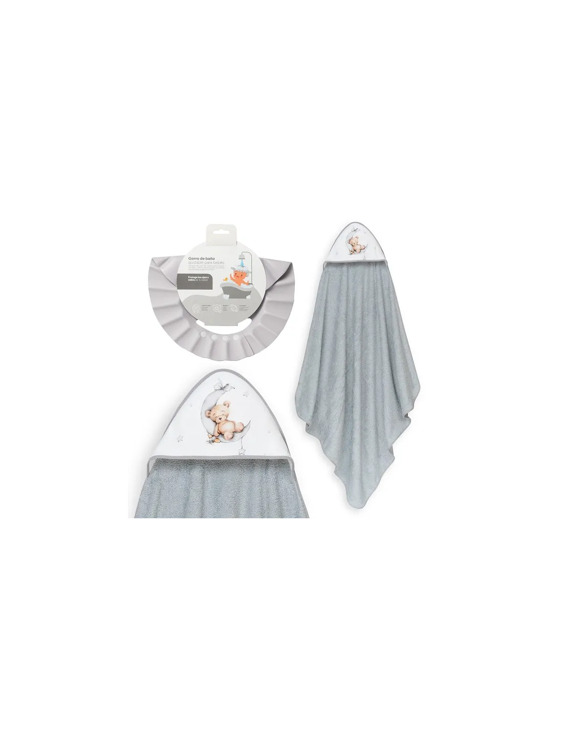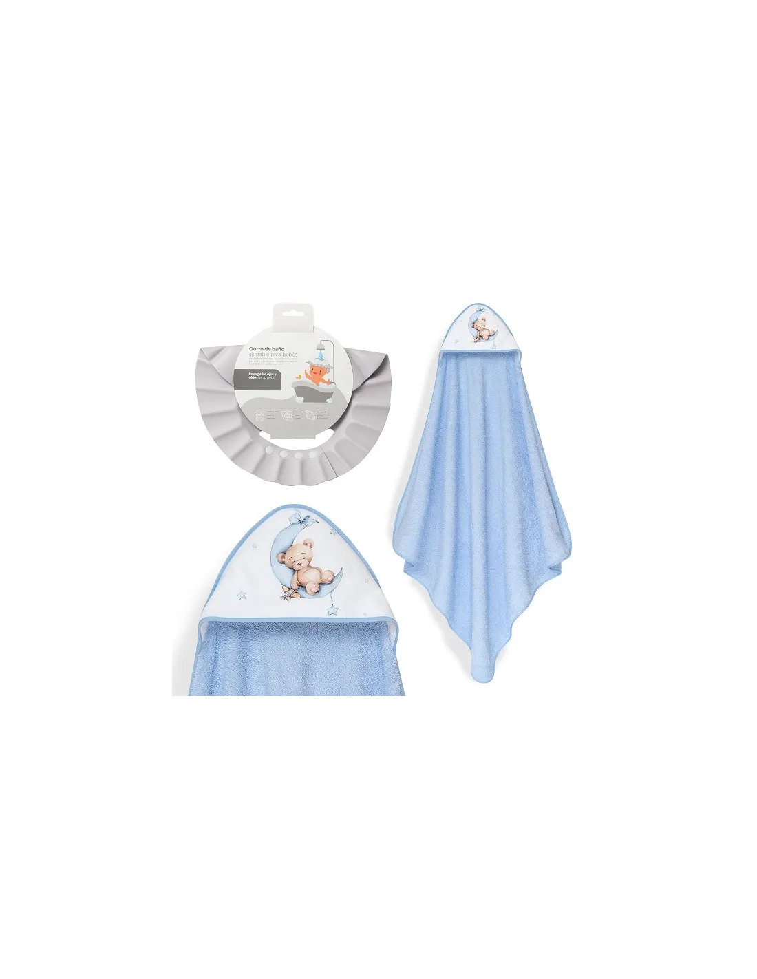 Capa De Baño 1x1 Oso Luna Estrellas + Gorro